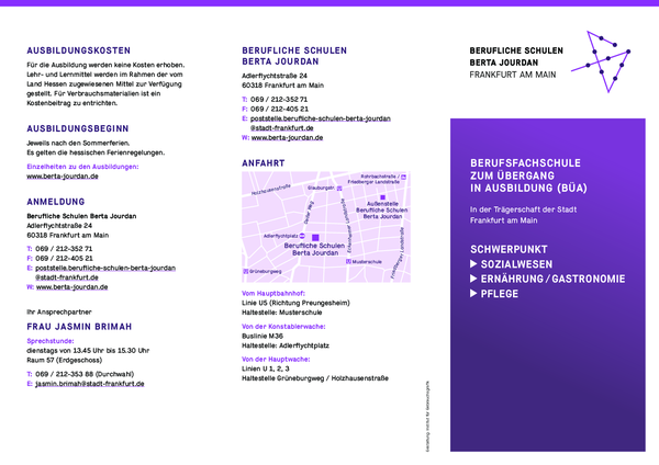 Für den Schulbesuch in der BÜA (Berufsfachschule zum Übergang in Ausbildung) werden keine Kosten erhoben.