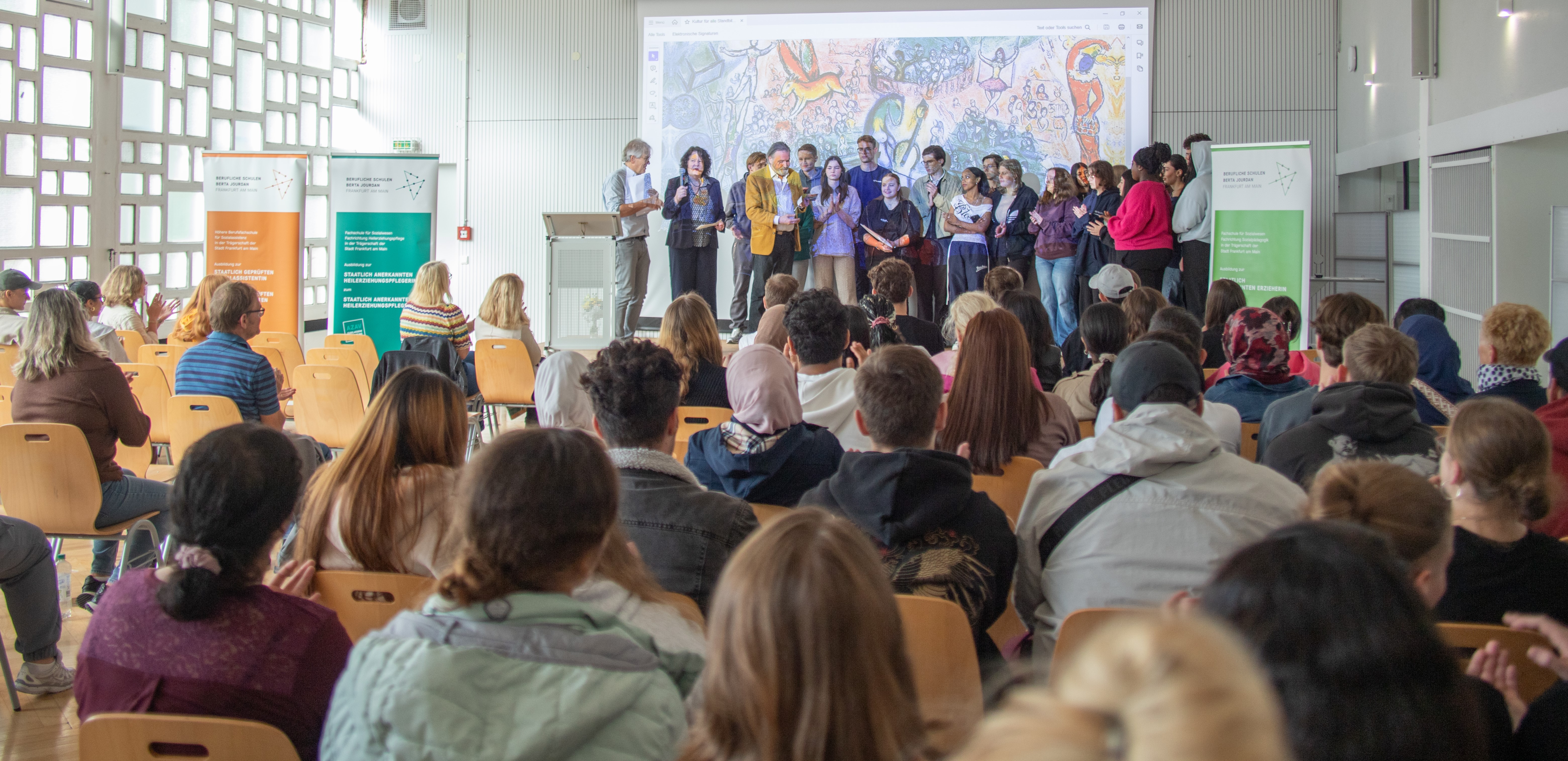 Die Stadträtin Sylvia Weber und der Begründer des Vereins Kultur für Alle e.V. überreichen am 16.09.2025 den Studierenden der Fachschulen für Sozialwesen sowie Schülerinnen und Schülern der Höheren Berufsfachschule für Sozialassistenz, die sich jeweils im 1. Ausbildungsjahr befinden, einen kostenfreien Kulturpass. Diesen können die Lernenden nutzen, um kulturelle Orte in Frankfurt für sehr wenig Geld besuchen zu können (wie zum Beispiel Museen, Theater und Oper). Eine großartige Möglichkeit, um das vielseitige Kulturprogramm in Frankfurt kennenzulernen. Gleichzeitig können die Lernenden unterschiedliche Impulse für die kulturelle Bildung in der sozialpädagogische Praxis erhalten. Die Teilhabe an Kultur muss für Groß und Klein möglich sein.